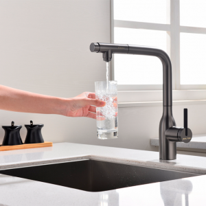 Модель оснащена выдвижным поворотным изливом, который значительно расширяет рабочую зону над раковиной — идеально подходит для мытья крупной посуды, фруктов, овощей и ухода за кухонной зоной. Дополнительная функция — возможность подключения системы фильтрации питьевой воды — делает использование смесителя еще более практичным и безопасным.