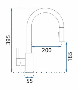 - Высота излива: 185 мм
