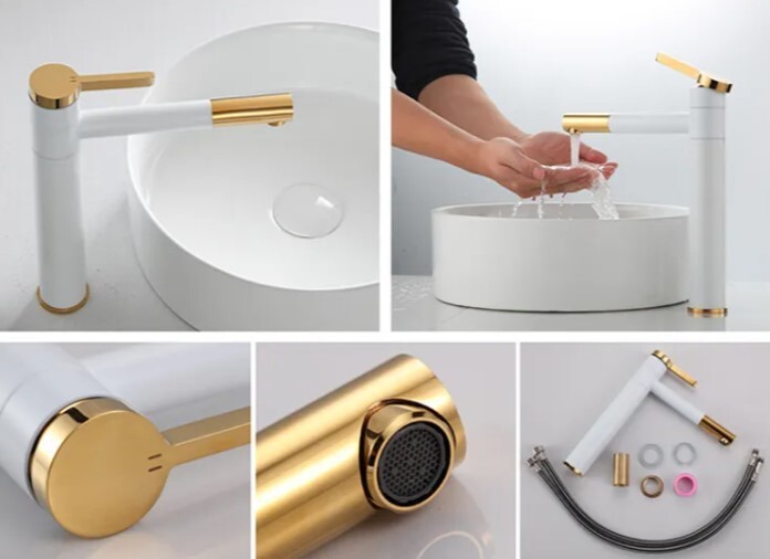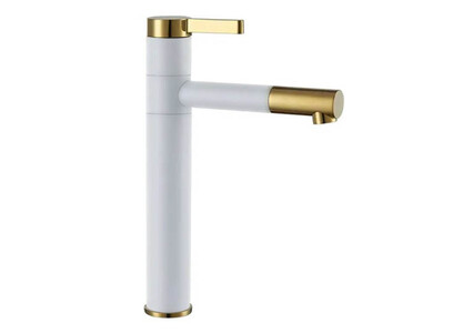 Смеситель Rea Smart White Gold REA-B8400 — стильная модель с высоким поворотным изливом, для установки на столешницу. Изготовлен из латуни, с четырехкратным покрытием белого цвета с золотом. Смеситель оснащен аэратором для мягкого, экономичного потока без брызг.