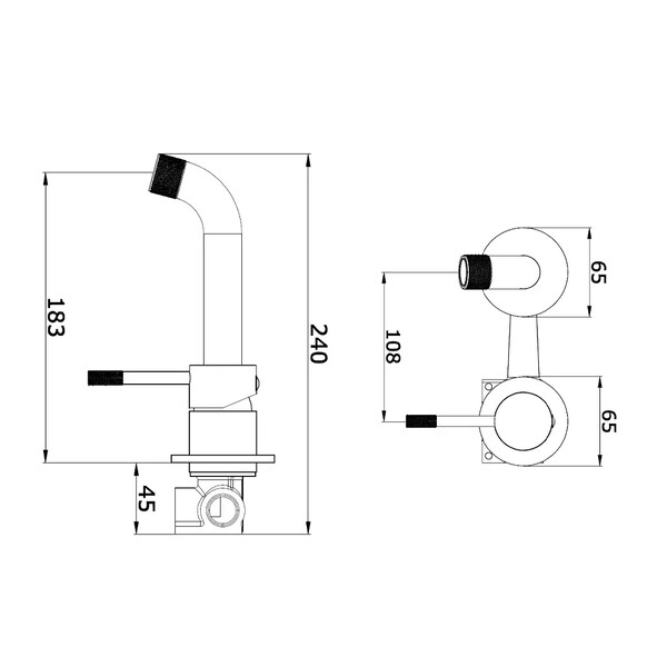 - Однорычажный, встраиваемый смеситель с коротким литым изливом.