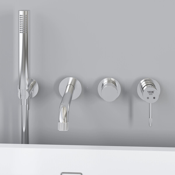 Смеситель для ванны VIEIR Chrom V403532 изготовлен из латуни. Модель представлена в цвете хром.