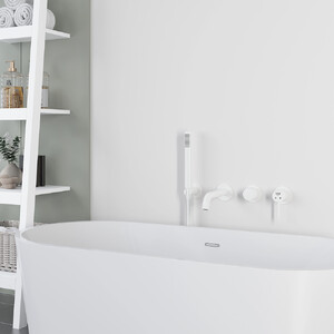 Смеситель для ванны VIEIR White V403532F изготовлен из латуни. Модель представлена в белом матовом цвете.