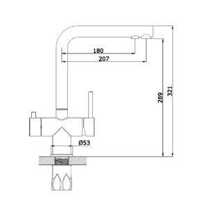 - Однорычажный, с подключением к фильтру, высокий поворотный излив 2-в-1 (биканальный).