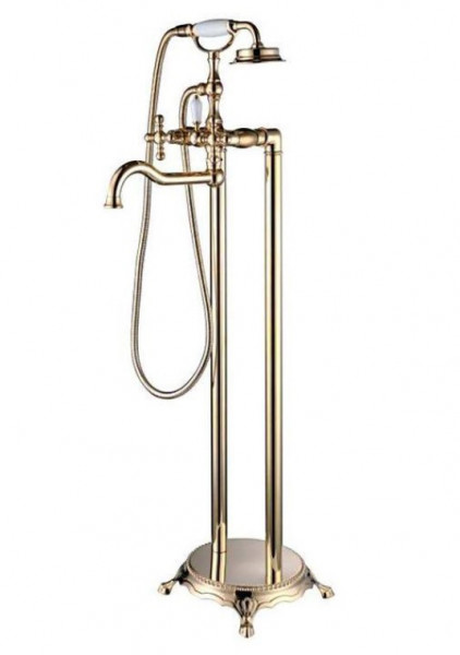 В комплект входит ручной душ из нержавеющей стали с одним режимом распыления и душевой шланг длиной 150 см, обеспечивающий комфорт и свободу движений при принятии ванны или душа. Высокий излив и напольная установка делают использование максимально удобным, а золотое покрытие устойчиво к царапинам, отпечаткам пальцев и известковому налёту — уход за смесителем остаётся простым и быстрым.