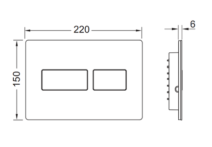 Панель смыва для смывных бачков TECE, фронтальная или верхняя установка. Сверхплоская панель смыва с двумя установленными на пружинах клавишами. Совместима с контейнером для гигиенических таблеток. Размеры (ш x в x г): 220 х 150 х 6 мм
