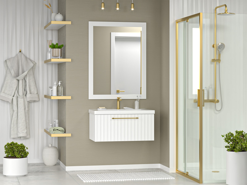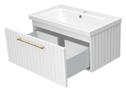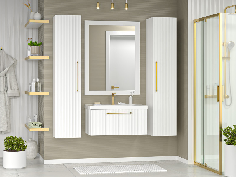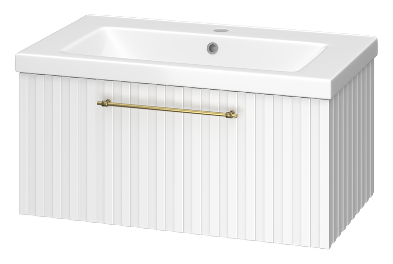 Тумба под раковину Brevita Alicante 80 подвесная белая обладает фрезерованной поверхностью, которая создает уникальный декоративный эффект, добавляя глубину и текстуру. Такое решение создает впечатление ручной работы, подчеркивает индивидуальность каждого мебельного элемента.