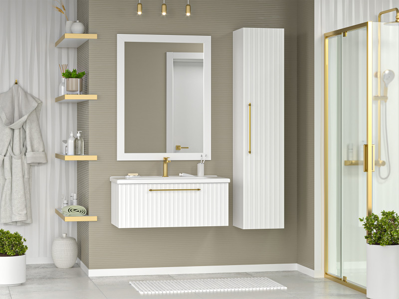 Тумба под раковину Brevita Alicante 90 подвесная белая обладает фрезерованной поверхностью, которая создает уникальный декоративный эффект, добавляя глубину и текстуру. Такое решение создает впечатление ручной работы, подчеркивает индивидуальность каждого мебельного элемента.