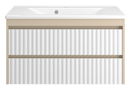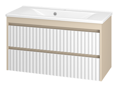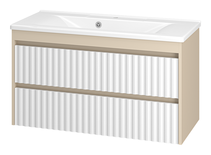 Тумба под раковину Brevita Balaton 100 подвесная белая/бежевая станет отличным решением для поклонников современного стиля. Изделие отличается необычным дизайном, в котором сочетаются различные стилистические решения и оригинальные декоративные элементы. Фасад тумбы имеет рельефную волнистую поверхность.