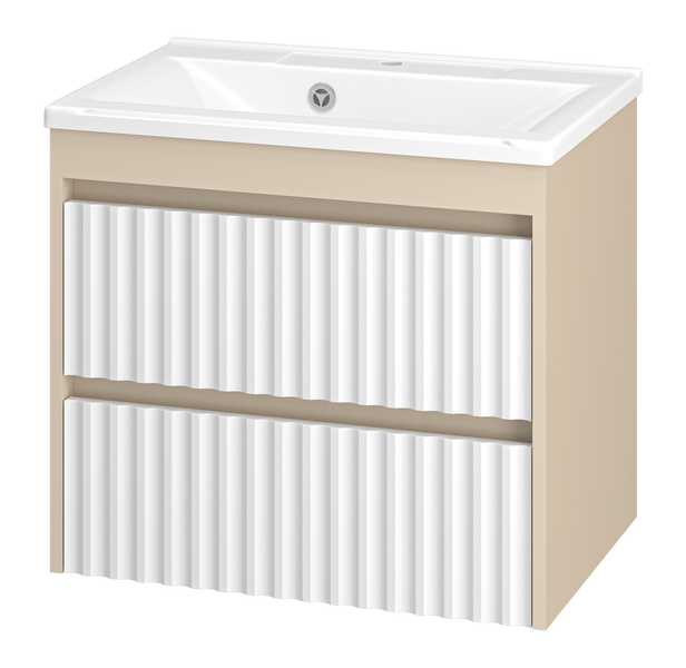 Тумба под раковину Brevita Balaton 65 подвесная белая/бежевая станет отличным решением для поклонников современного стиля. Изделие отличается необычным дизайном, в котором сочетаются различные стилистические решения и оригинальные декоративные элементы. Фасад тумбы имеет рельефную волнистую поверхность.