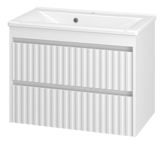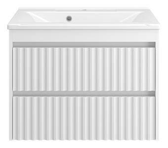 Тумба под раковину Brevita Balaton 75 подвесная белая станет отличным решением для поклонников современного стиля. Изделие отличается необычным дизайном, в котором сочетаются различные стилистические решения и оригинальные декоративные элементы. Фасад тумбы имеет рельефную волнистую поверхность.
