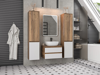 Стильная мебель в ванную Dakota от бренда Brevita сочетает в себе оригинальный внешний вид фрезерованных фасадов и практичную конструкцию с высоким качеством сборки. Высокое качество сборки, практичность, функциональность и эффектный внешний вид сделают эту мебель оригинальным дизайнерским решением для современной ванной комнаты.