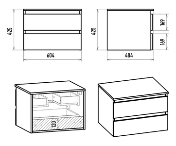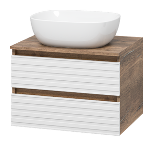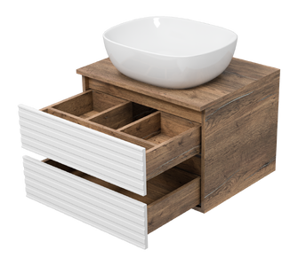 Тумба под раковину Brevita Dakota 60 подвесная белая оснащена двумя выдвижными ящиками, которые установлены на направляющих скрытого монтажа с доводчиками. Верхний ящик разделен на несколько отсеков перегородками. Тумба поставляется с цельной столешницей без отверстий, что позволяет выбрать удобное расположение накладной раковины.