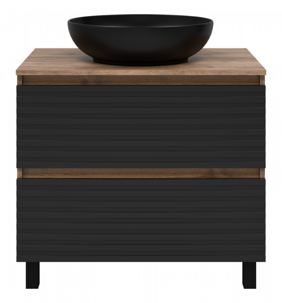 Тумба под раковину Brevita Dakota 80 подвесная черная оснащена двумя выдвижными ящиками, которые установлены на направляющих скрытого монтажа с доводчиками. Верхний ящик разделен на несколько отсеков перегородками. Тумба поставляется с цельной столешницей без отверстий, что позволяет выбрать удобное расположение накладной раковины.