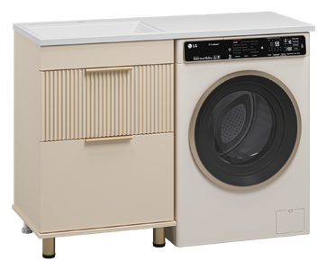 Тумба Brevita Enfida 60 под стиральную машину бежевая имеет выдвижной ящик. Направляющие с доводчиками обеспечивают бесшумное и плавное закрывание.