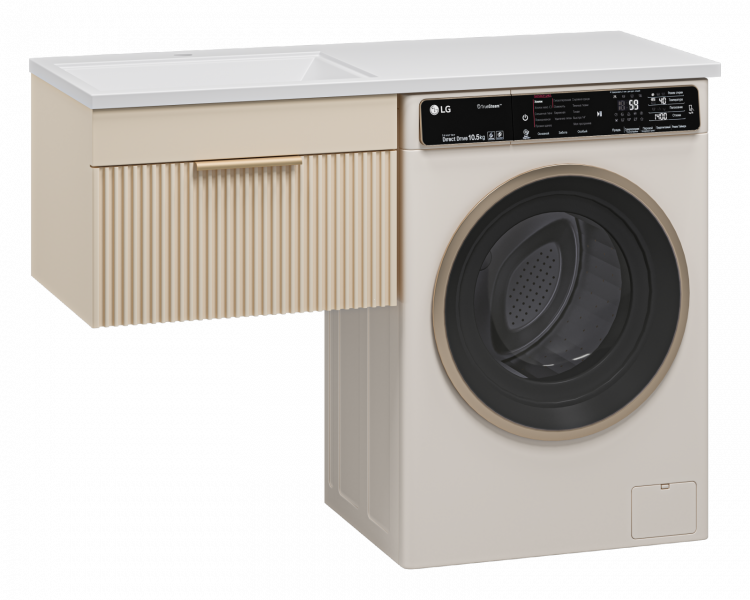 Тумба Brevita Enfida 60 под стиральную машину бежевая имеет выдвижной ящик. Направляющие с доводчиками обеспечивают бесшумное и плавное закрывание.