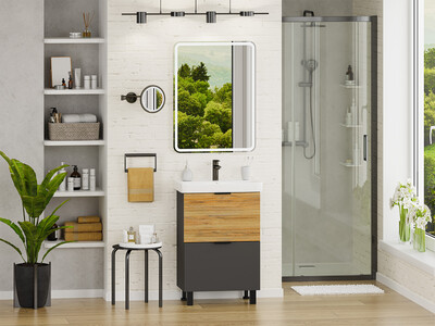 Тумба под раковину Misty Форест 60 светлое дерево/серый — это идеальное сочетание стиля, функциональности и качества, которое дополнит интерьер вашей ванной комнаты.