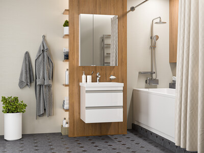Тумба под раковину Misty Ингрид 60 займет достойное место в современной ванной комнате. В основе дизайна – элементы стиля минимализм и модерн которые гармонично формируют оригинальный цельный образ. На фоне белых глянцевых фасадов выделяются ручки из алюминиевого профиля, придавая мебели эффектный внешний вид.