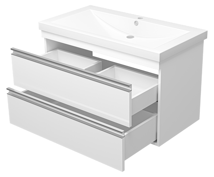 Тумба под раковину Misty Ингрид 90 займет достойное место в современной ванной комнате. В основе дизайна – элементы стиля минимализм и модерн которые гармонично формируют оригинальный цельный образ. На фоне белых глянцевых фасадов выделяются ручки из алюминиевого профиля, придавая мебели эффектный внешний вид.