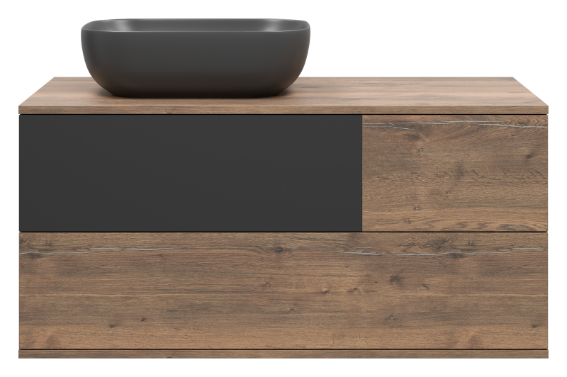 - Размеры: ширина 100 см — идеально подходит для просторных ванных комнат, обеспечивая много места для раковины и хранения принадлежностей.