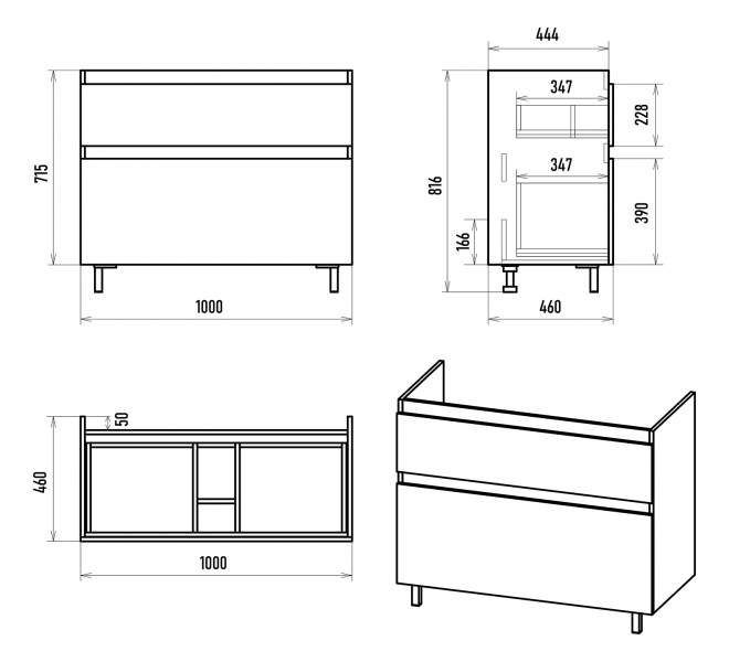 - Функциональность: оснащена удобными ящиками для хранения бытовых принадлежностей, косметики и других вещей. Механизмы открывания работают плавно и бесшумно.