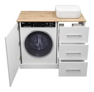 Тумба под раковину Misty Респект 110 под стиральную машину белый/светлое дерево — это идеальное сочетание стиля, функциональности и качества, которое дополнит интерьер вашей ванной комнаты.