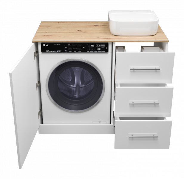 Купить тумбу под раковину Misty Респект 110 под стиральную машину правая белый/светлое дерево вы можете в нашем интернет-магазине по низкой цене и выгодной доставкой по Минску и всей Беларуси. У нас работают грамотные специалисты, которые проконсультируют вас по выбору всей сантехники и комплектующих. В нашем магазине только сертифицированная продукция с заводской гарантией от производителя.