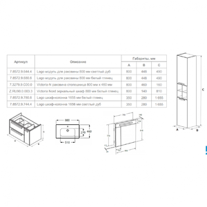 Тумба под умывальник Roca LAGO 80х44 7857296806 белый глянец