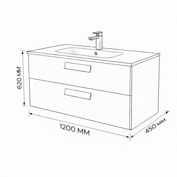 Тумба с раковиной подвесная 120см Terminus Noto NOT101202099901O черный soft touch