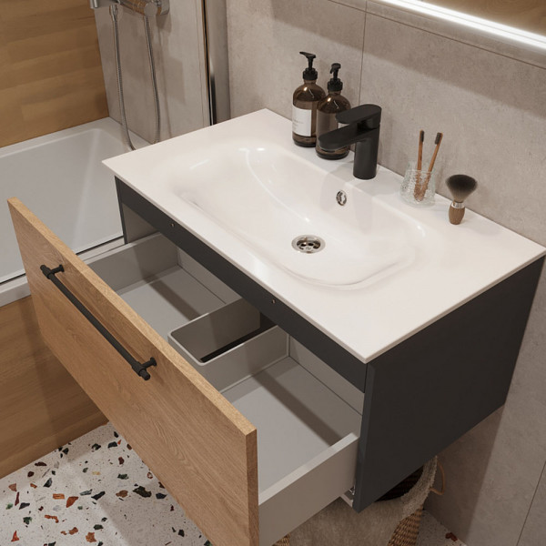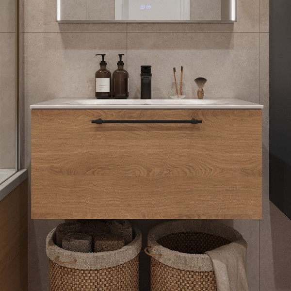Тумба с раковиной подвесная 80см Terminus Venta VEN10801300001O шпон/дуб
