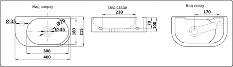Умывальник CeramaLux 78204R - подвесная модель полукруглой формы с готовым отверстием для смесителя и без отверстия для перелива.