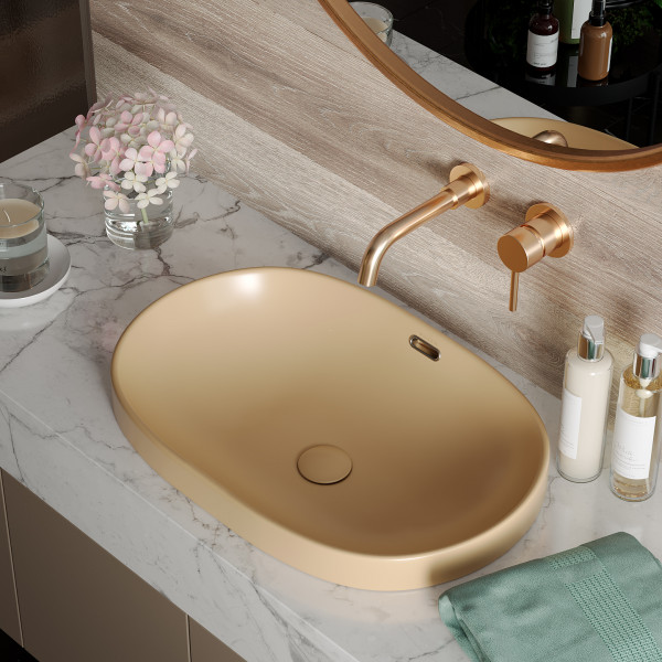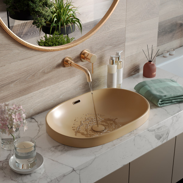 Умывальник Roxen Batt 570155-BG - врезная модель c оригинальным отверстием перелива. Умывальник изготовлен из санитарного фарфора PorCelain, который обеспечивает прочность изделия и гладкую поверхность. Благодаря уникальному процессу шлифовки (машинная + ручная) достигается отсутствие пор и углублений. Специальное антибактериальное покрытие Ultra Glide обеспечивает легкий уход, гигиеничность и первоначальный внешний вид на долгие годы. В комплекте поставляется донный клапан в цвет умывальника.