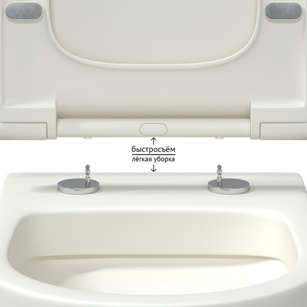 Быстросъемное сидение также является важным элементом унитаза BERGES. Это удобное решение позволяет легко снимать сидение для уборки или замены. Благодаря этому, поддерживать гигиену в ванной комнате становится еще проще и удобнее.