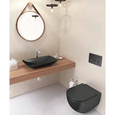 Унитаз подвесной безободковый Isvea Infinity чёрный матовый, сидение микролифт (10NF02001B)