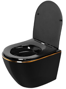 Rea Carlo Mini rimless Flat Black Gold Edge C8800 - функциональный и современный унитаз. Это чаша, которая идеально заполнит пространство вашей ванной комнаты, сохранив при этом безупречный внешний вид и эстетику интерьера. Чаша приспособлена для установки на стеллаж скрытого монтажа. Изготовлена из высококачественной санитарной керамики с матовым покрытием. Благодаря безободковой технике его очень легко чистить.