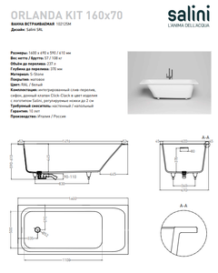Ванна из искусственного камня Salini ORLANDA KIT 160x70