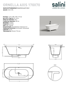 Ornella Axis Ornella Axis — универсальная ванна Salini из литого камня, отличающаяся просторной чашей идеально округлой формы. Вневременная эстетика и чистые линии корпуса ванны делает её уместной и желанной как в классическом, так и в современном интерьере. Ванна предназначена для полного или частичного встраивания, а также для любой установки - пристенной, угловой или отдельностоящей. Красавица Ornella характеризуется одинаковым пологим уклоном бортов и расположенными посередине сливом-переливом и донным клапаном. Название модели Axis («Ось) отражает характерную симметрию ванны во фронтальной проекции. Помимо установки на пол, ванна может быть полностью или частично встроена в пол или подиум. В последнем случае, ванна также оснащается декоративными экранами, высота которых адаптируется по запросу. Ванна может быть дополнена ревизионным люком, вырезанным во фронтальном экране для доступа к сифону. Люк с тонким контуром, находящийся в одной плоскости с экраном, гарантирует безупречную эстетику этой лаконичной модели. Таким образом, одна и та же универсальная модель от Salini способна обладать параметрами, соответствующими персональному запросу, встраивается в любое предназначенное для нее пространство и удовлетворяет всем критериям современного качества жизни.