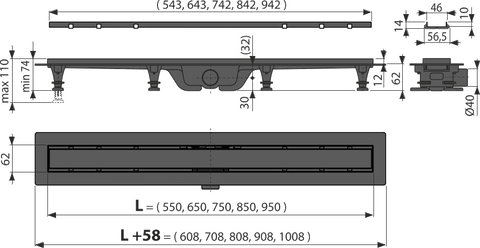 - Регулируемые монтажные ножки 0–35 мм, позволяют быстро и удобно установить желоб и выровнять его в горизонтальной плоскости