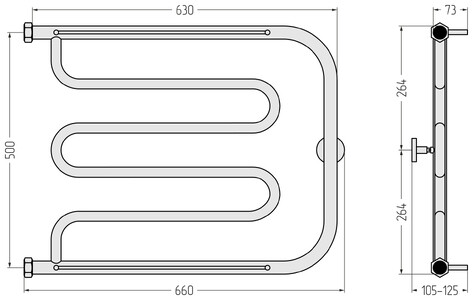 ВЕРТИКАЛЬНОЕ ПОДКЛЮЧЕНИЕ. В комплекте есть всё необходимое для вертикального подключения полотенцесушителя к магистрали горячего водоснабжения. Дополнительные комплектующие потребуются только в случае необходимости вертикального углового подключения «в стену».