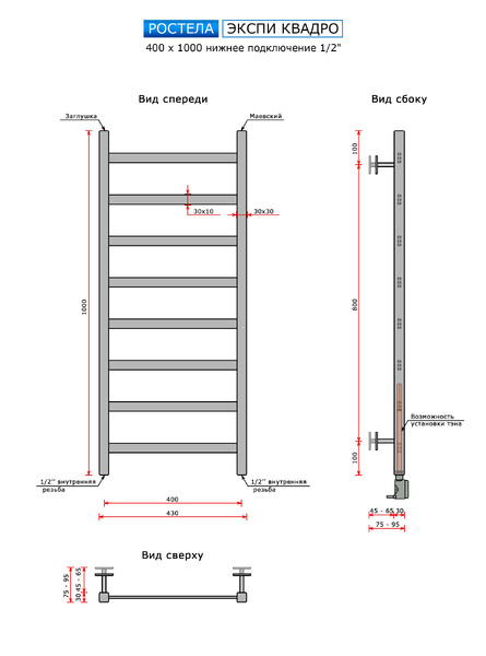 При изготовлении используются высококачественные трубы европейского производства. Полотенцесушитель выполнен из нержавеющей стали марки AISI 304, поэтому устойчив к образованию коррозии на поверхности. Фитинги в комплект поставки не входят.