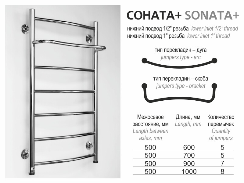 - Соната + (1 полка, нижн,подв.,1/2" резьба) 500 x 1000 / 8