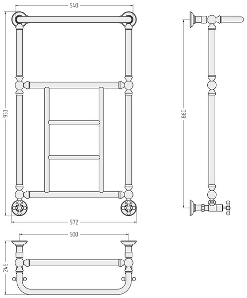 НИЖНЕЕ ПОДКЛЮЧЕНИЕ. В комплекте есть всё необходимое для нижнего подключения полотенцесушителя «в стену». Запорно-регулирующие вентили выполнены в едином стиле с полотенцесушителем и также входят в стандартную комплектацию.