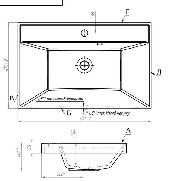 Умывальник Andrea Classic 700 - модель для врезного монтажа или на тумбу.