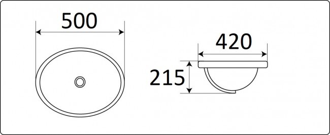 Овальная врезная модель для монтажа на столешницу. С переливом и без отверстия под смеситель.
