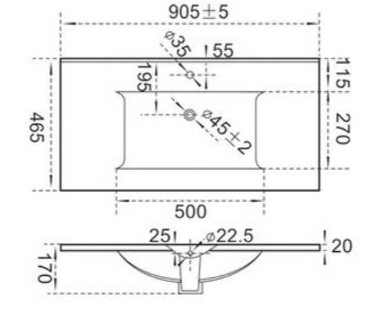 Прямоугольная врезная модель для монтажа на столешницу или на тумбу. Имеет 1 готовое отверстие для смесителя и отверстие для перелива.