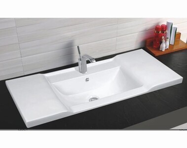 Прямоугольная врезная модель для монтажа на столешницу или на тумбу. Имеет 1 готовое отверстие для смесителя и отверстие для перелива.