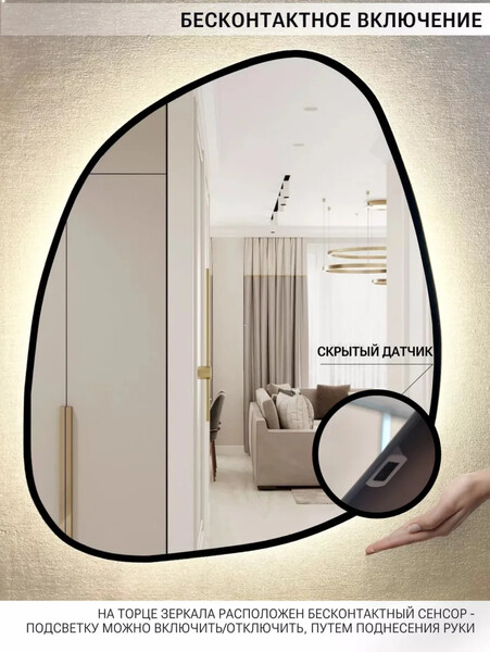 Зеркало фигурное с черной УФ-окантовкой и подсветкой Emze Nf Led 72х90 см LED.UV.NF.72.90.CHE.SW.4K