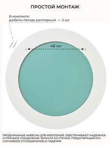 - Зеркало подходит для эксплуатации в помещениях с повышенной влажностью, отлично гармонирует с мебелью и другими предметами интерьера.