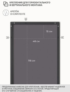 Зеркальное полотно AGC категории премиум не искажает и не затемняет отражение. Изделие укомплектовано прочными креплениями и готово к монтажу. Возможен горизонтальный и вертикальный монтаж. Зеркало подходит для эксплуатации в помещениях с повышенной влажностью. Благодаря своему лаконичному дизайну зеркало в алюминиевой раме идеально впишется в любой интерьер.
