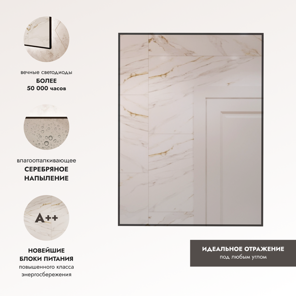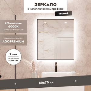 Зеркало с подсветкой Benetto ПОЗИТАНО 700х800 в черной раме