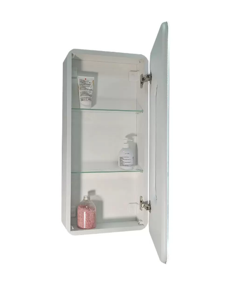 Вместительные и компактные шкафы оснащены стеклянными полочками для хранения косметических принадлежностей, крупным зеркалом с LED-подсветкой, достаточной для освещения всего санузла и удобно расположенной на корпусе розеткой для электроприборов.